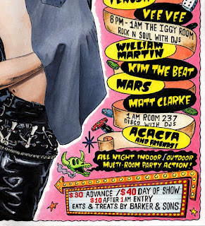 The 15th annual NY Night Train New Years Ball is upon us and here is my new poster for it! You'll notice in some process pics there is already a poster with Kid Congo Powers that I am using for reference. Well, last year, Kid was scheduled to headline the party but had to back out last minute due to an injury. He's all healed up and back for the party this year so I created a new background with new information and just slapped the drawing of him from last year's poster onto this one.